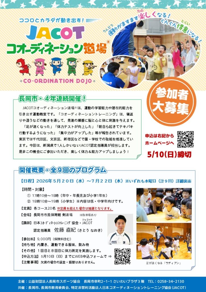 JACOTコオーディネーション道場®in長岡2026年5月~7月開催【申込受付中】